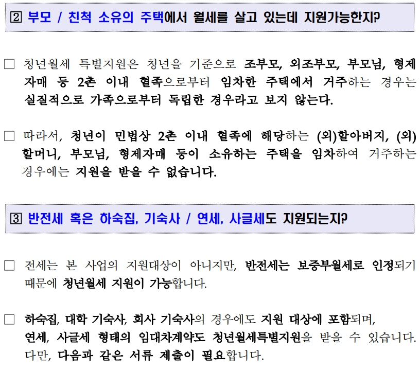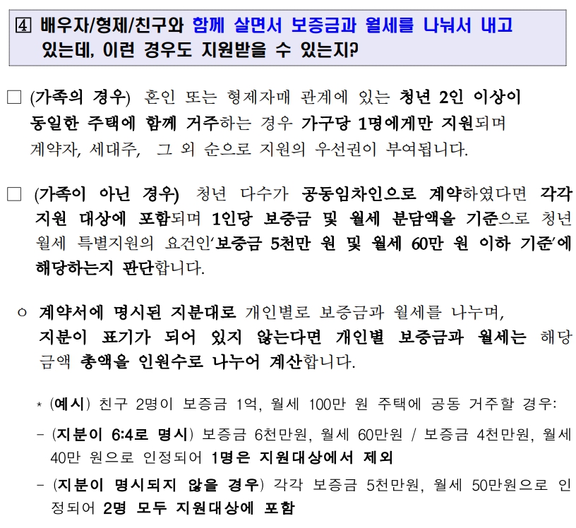 - 보증금 5천만원을 초과하면 월세 지원을 받을 수 없음