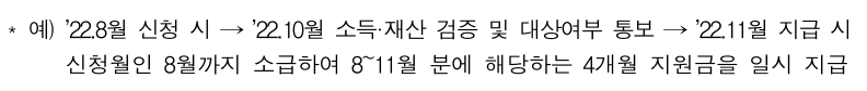 - 지원금은 신청한 달로 소급하여 지급함